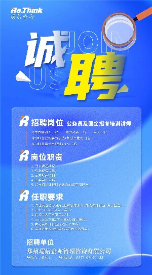 【崗位職責】 1.線下課程教授 2.線上課程錄播 3.日常教研培訓 4.日常學員答疑 5.參與相關課程所需課件的編寫和研發 【任職要求】 1.溝通表達能力良好、邏輯思維清晰,熱愛教師行業,勇于擔當; 2.碩士 、研究生及以上; 3.有經驗可放寬至本科; 4.認可企業文化,甘于奉獻,踏實穩定; 5.有相關教師行業經驗優先考慮; 6.言語講師專業要求:非藝術和體育類。 【招聘單位信息】 公司名稱:鄭州瑞信企業管理咨詢有限公司 聯系人:劉女士 0371-63691158